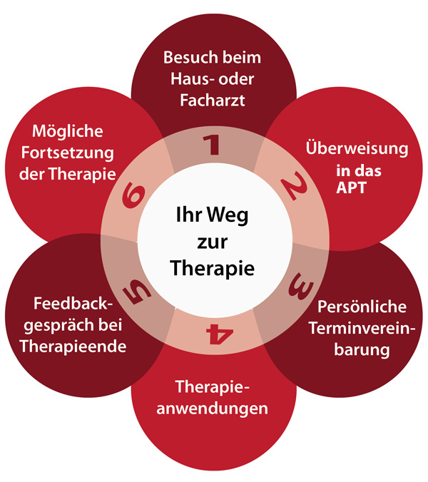 Alle Patient :innen mit einer Krankenversicherung können ohne chefärztliche Bewilligung an uns überwiesen werden, da wir eine Krankenanstalt sind. Über Zuweisung des Haus- oder Facharztes (Vertrags- oder Wahlarzt) können ambulante Therapien im APT in Anspruch genommen werden.